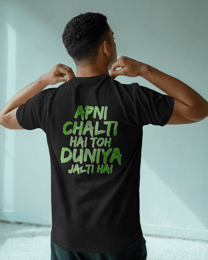 Unisex Apni Chalti Hai To Duniya Jalti Hai Back Printed Oversized T-Shirt